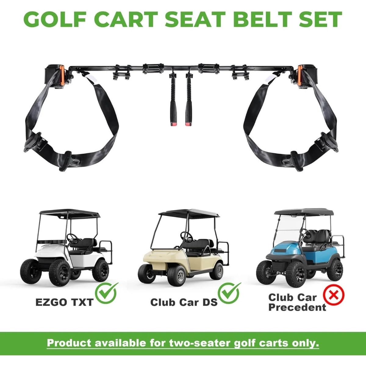 Upgrade your 2-passenger golf cart with confidence. This DOT-Certified 3-Point Seat Belts Kit is engineered and tested to meet official Department of Transportation safety standards. Specifically designed for EZGO TXT and Club Car DS models, it provides a complete, trusted safety solution for the driver and front passenger, turning your cart into a more secure vehicle for street-legal communities and everyday adventures.