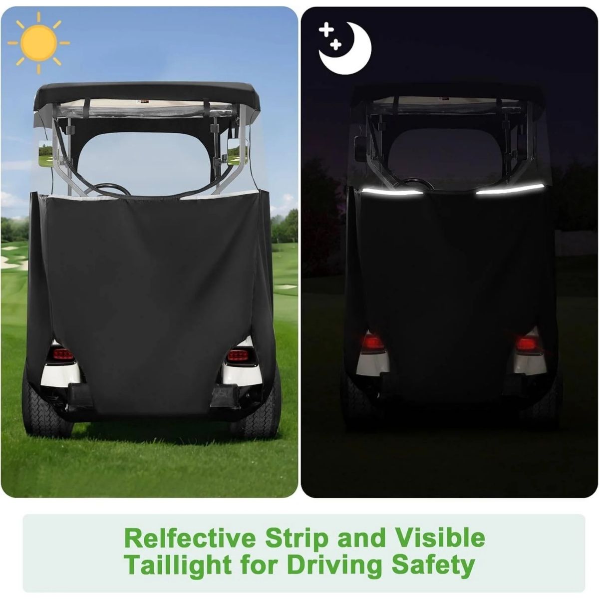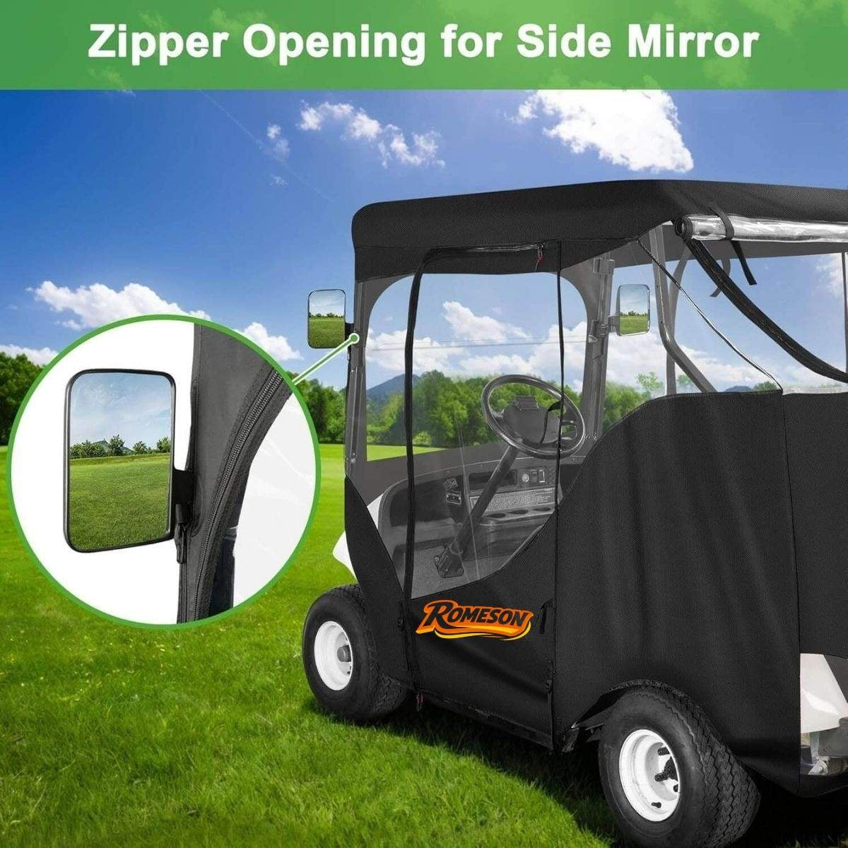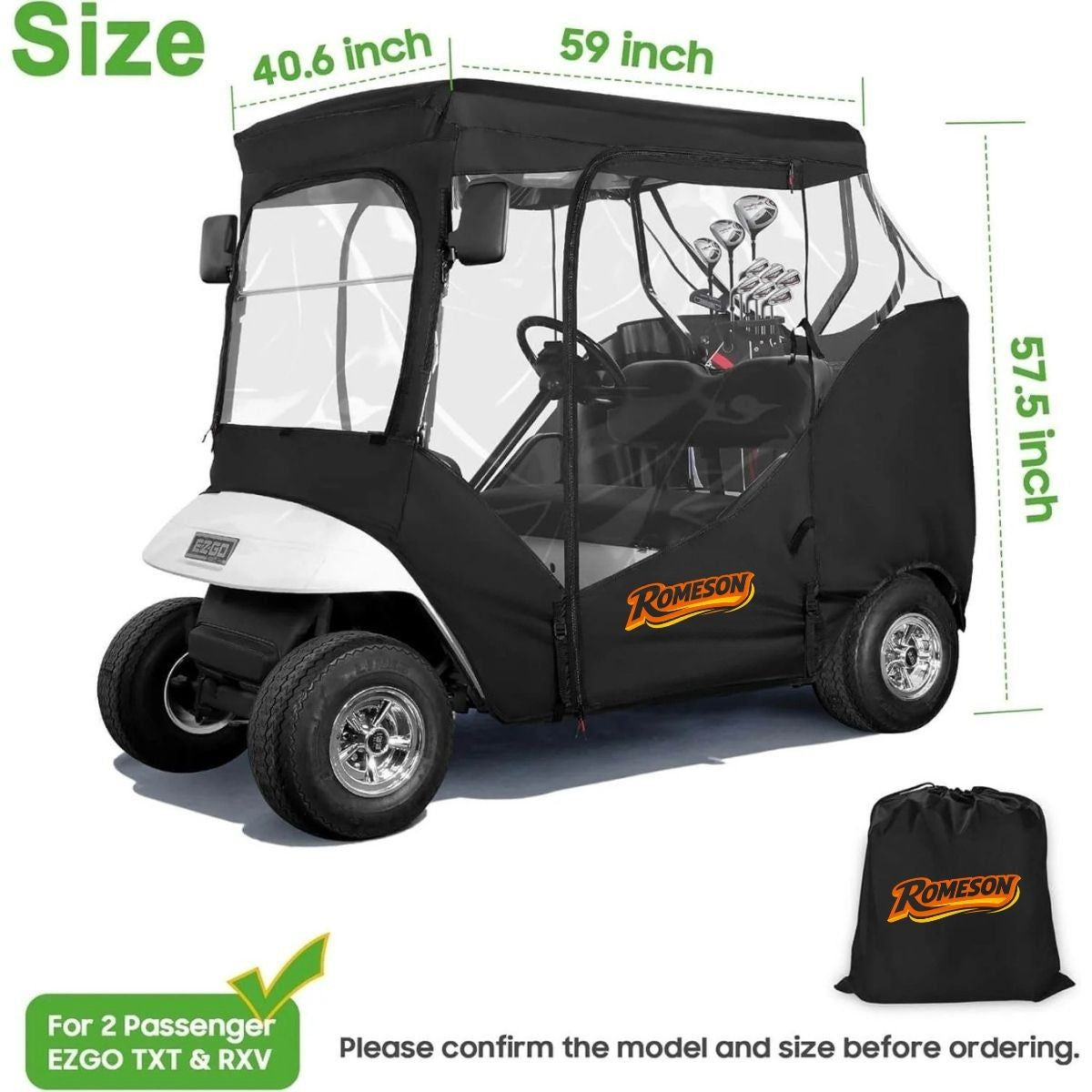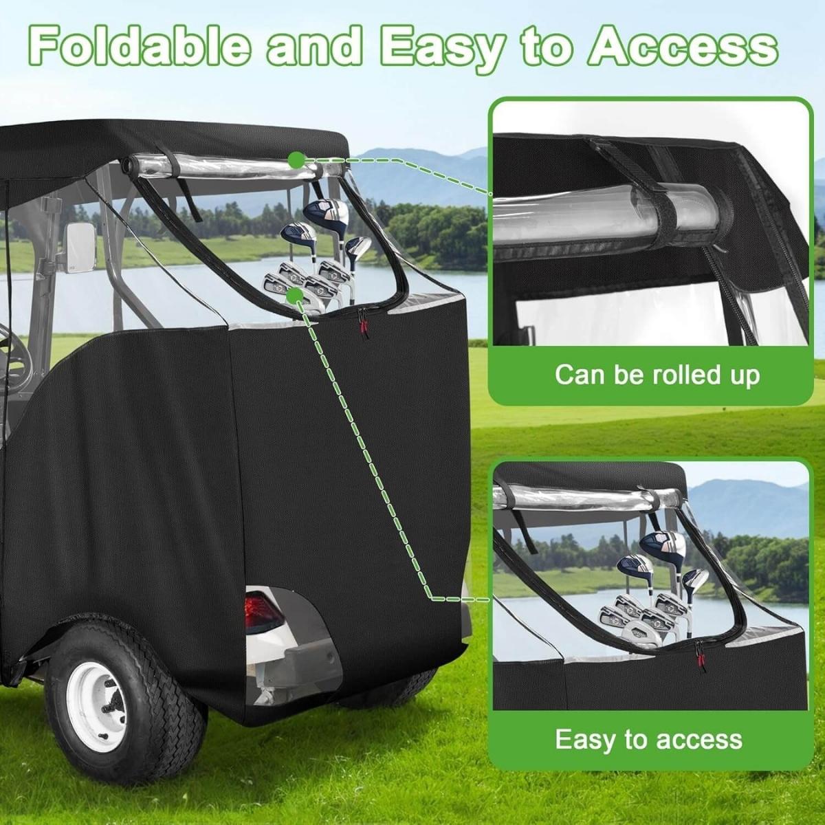 Engineered specifically for EZGO TXT & RXV 2-passenger models, this enclosure delivers perfect fit and superior protection. The commercial-grade 600D fabric provides exceptional durability and weather resistance, making it ideal for both personal use and commercial applications. Enjoy peace of mind knowing your cart is protected in all weather conditions.