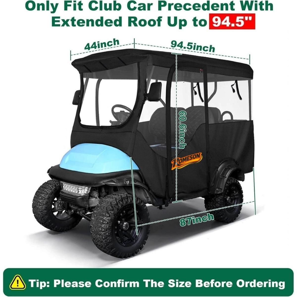 Engineered exclusively for Club Car Precedent models, this enclosure delivers factory-like fit with superior aftermarket durability. The commercial-grade 600D fabric outperforms standard 300D materials, providing exceptional tear resistance and long-term weather protection. Perfect for personal use, rental fleets, or commercial applications.