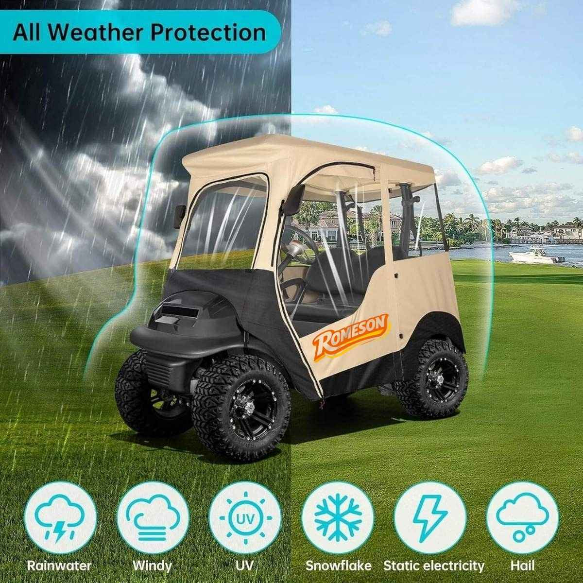 Specifically engineered for Club Car Precedent, Onward & Tempo 2-passenger models, this enclosure delivers factory-like fit with superior aftermarket durability. The commercial-grade 600D fabric provides exceptional tear resistance and long-term weather protection, making it perfect for personal use, golf courses, resorts, and rental fleets.