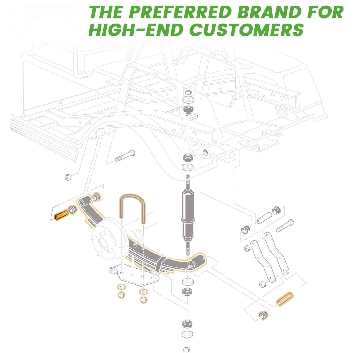 Replacement shackles and premium bushings