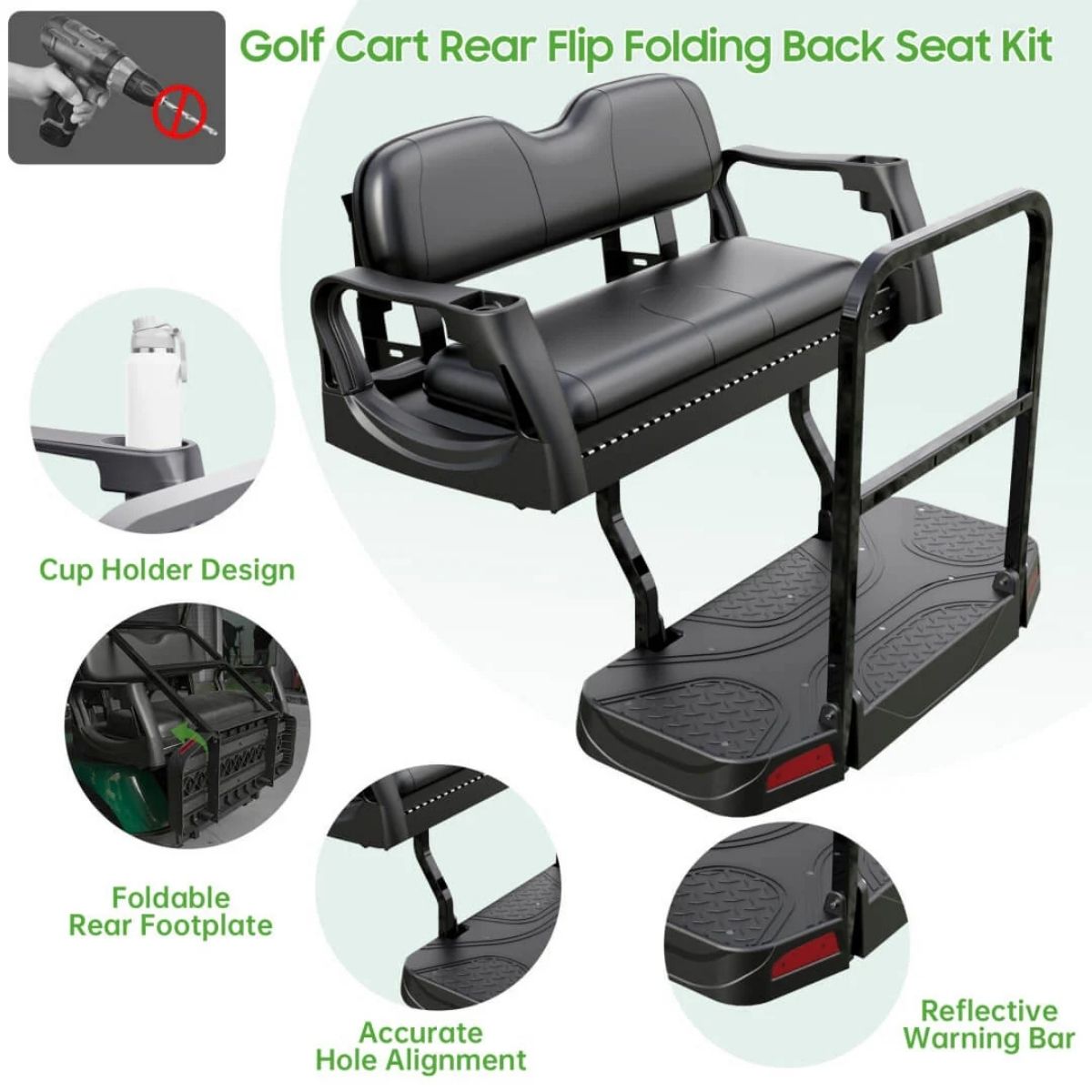 Transform your Club Car DS with unmatched strength and versatility. Our Rear Flip Seat combines an industrial-grade heavy-duty alloy steel frame with a rugged Polyethylene (PE) cargo deck to create the most durable and functional 2-in-1 solution available. It's engineered not just to add seats, but to handle heavy loads and demanding use with ease—perfect for work, play, or anything in between.