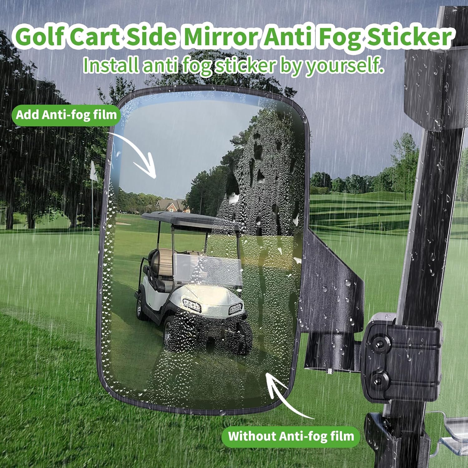 Never let fog, rain, or unexpected impacts compromise your safety. This premium Golf Cart Side Mirror combines an integrated anti-fog film with a high-definition, shatterproof lens to deliver unwavering clarity and durability. Engineered for universal, no-drill installation, it ensures your rear view stays sharp and reliable in any condition.