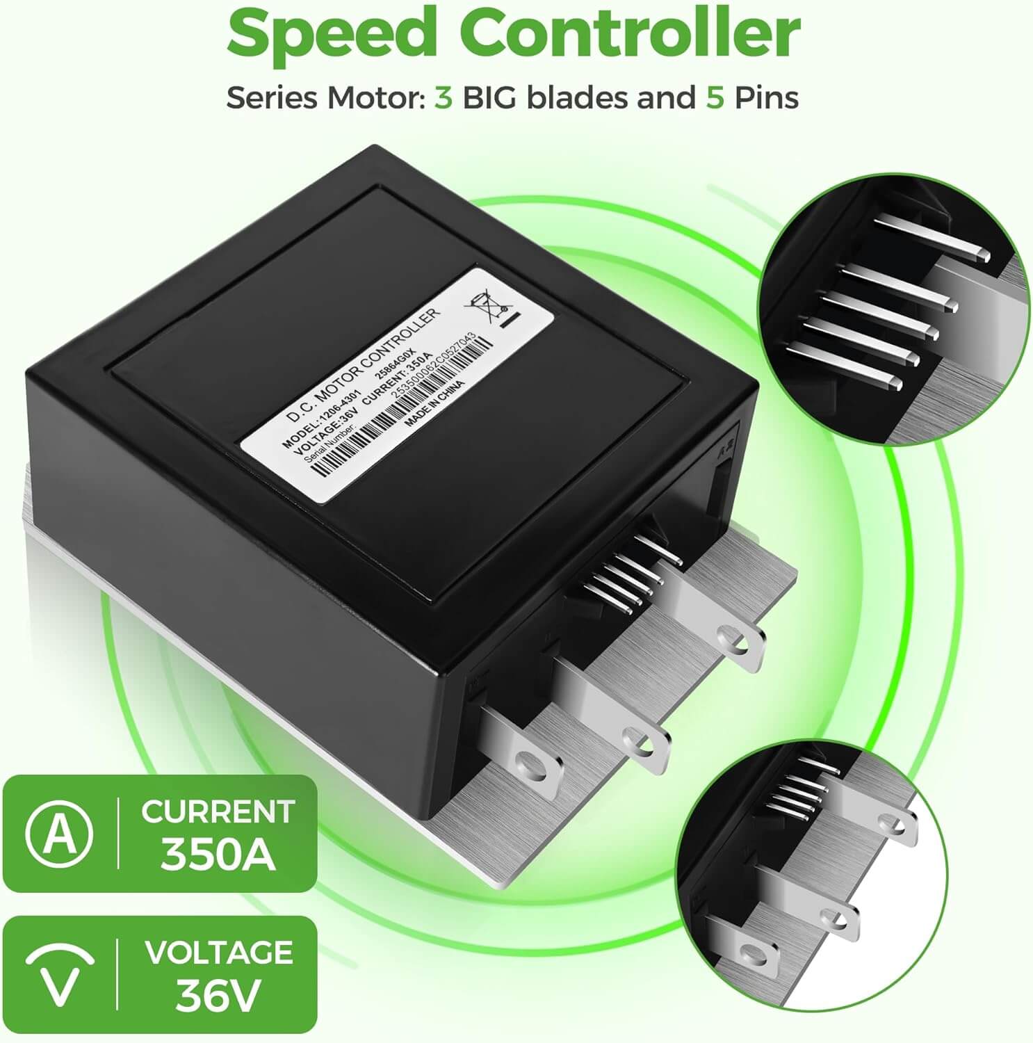 Unlock precise control and reliable power delivery for your electric golf cart. This 36V 350A 5-Pin Speed Controller serves as a robust, direct-fit upgrade or replacement, engineered for compatibility with Curtis models and EZGO TXT series carts utilizing PDS/MED drive systems. Designed to handle demanding use, it provides the solid foundation for smooth acceleration, consistent speed, and dependable operation of your 36V vehicle.