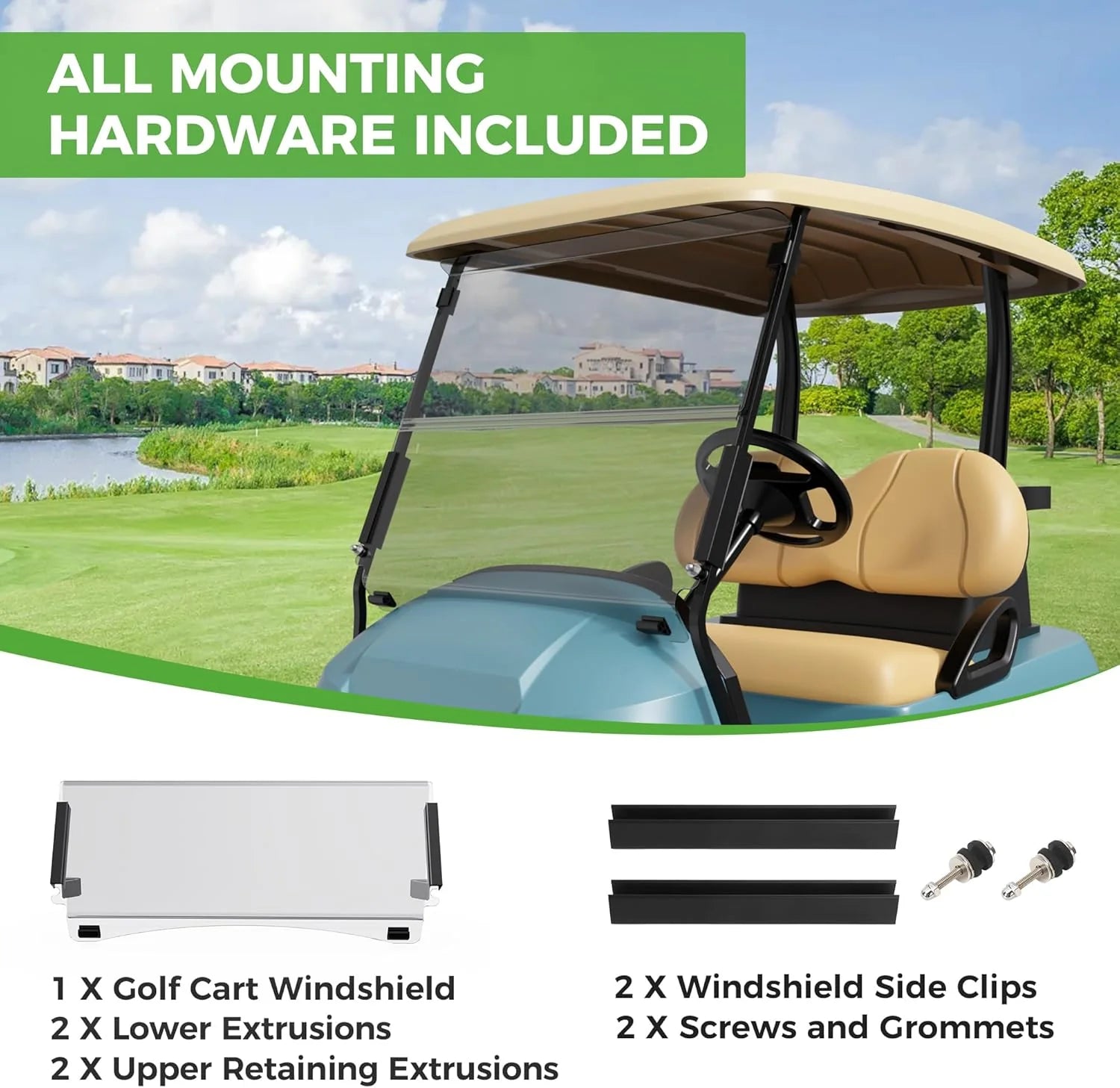 Prepare & Test Fit: Unpack the kit and temporarily position the windshield against your cart's roof frame to confirm alignment.