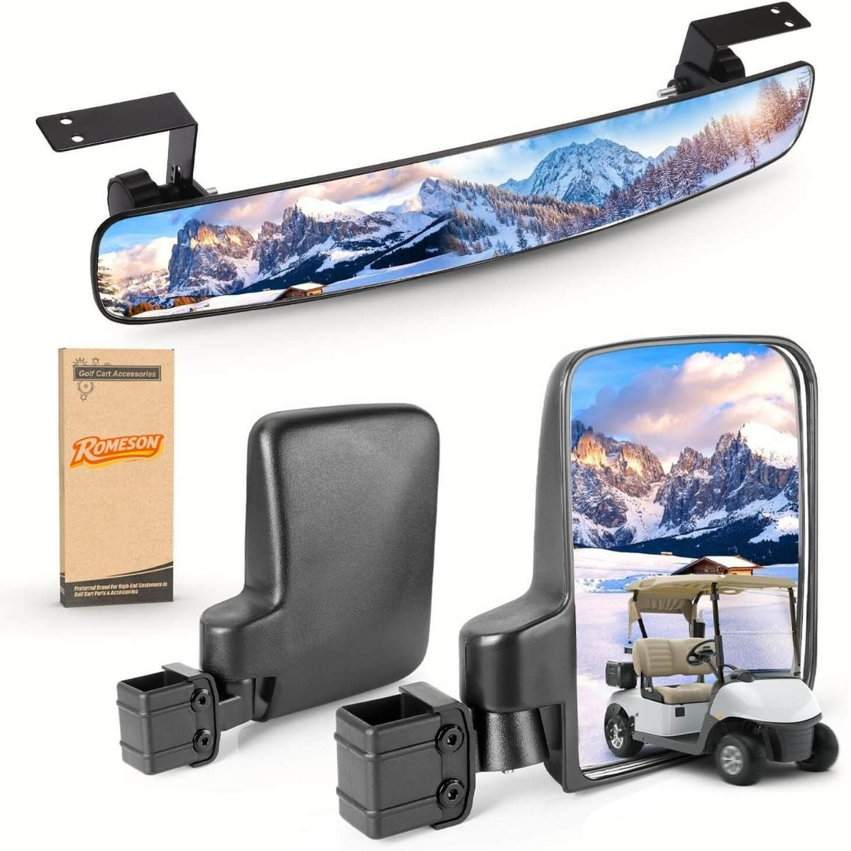 Upgrade your golf cart with the ultimate mirror solution designed for safety, versatility, and ease. Our Universal Golf Cart Mirrors offer a no-drilling installation, 180° panoramic rotation, and a foldable design to give you complete control over your rearview experience, no matter the course or terrain.