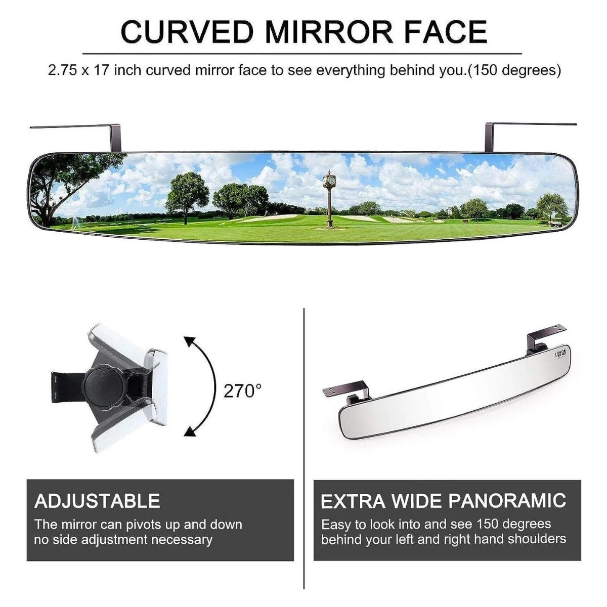 One Kit, Fits Most Carts: Designed to fit popular brands like EZGO, Club Car, Yamaha, and others. The side mirrors use sturdy clamps for roll bars (1"-1.5"), and the rear view mirror features a versatile clamp or adhesive option for the windshield frame.